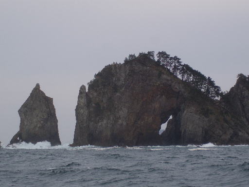 定置網を避けながら東へ2マイル、それから北へ転進すると弱いながらスターボのクオーター、波長の短いうねりがあるが一昨日の観光船よりはましです、冷たい風を顔に受けながら4度目の北山崎断崖の観光となりました。
