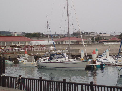 泊漁港では昨年停泊した漁協の脇に着岸しようかと覗いてみたら漁船がいっぱいなので急遽引き返し東側に造成中の新港の奥に12:30着艇。37NM(対地35.6NM)、6時間30分。