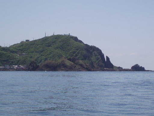 次第に風が上がり能代沖で停泊中のロシアの貨物船をかわしてから男鹿半島の入道崎に進路を変更する頃には潮も手伝って一時8ノットまでスピードアップ、「ツーポンなのに・・」と感心しながらもこちらを見ているロシアの船員にカッコいいところを見せようと少しヒール(船を傾かせること)させたりして・・・、でもツーポンなのを忘れていました・あまりカッコよくないか?、風を逃がしながら7ノットくらいにスピードを抑え一気に入道崎へ、岬の先端にある水島は銚子の長崎鼻のように多数の低い岩礁の島で夜には照射されているそうです。水島を大きく離しながら回り込んでランニングで秋田男鹿半島の西岸にある戸賀港へ。