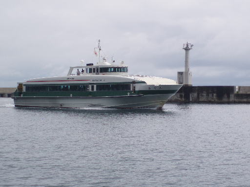 それでも4時には目が覚めてしまい。トマトジュースを飲んで目を覚まし、いつものように地上天気図・上空天気図・アメダスデータ・アメダス・レーダー合成図・波浪予想など一通りの事を確認し、初めから決まっていたのに改めて出港することを決定、船溜まり内のきれいなトイレを利用し、自転車を船内に取り込み、コーヒーを一杯飲んで6:20に舫いを解除して出港しました。出港前は結構忙しいものですよ。KNKさん夫婦に声をかけたら、二人でキャビンから顔を出し見送っていただきました、お二人で楽しい船旅を続けてください。