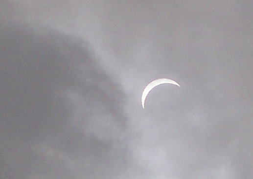 雨雲の間からやっと顔を出した日食で欠けた太陽、最大食の写真は撮れませんでした。