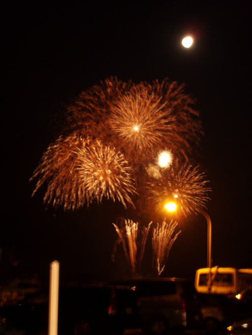 昨夜の的ケ浜は、こんなにも別府には住民がいるのか。と思うほどの人人でにぎわっていました、人込みをかき分けながら近くのヨットクラブの集合場所へ、数十人のクラブメンバーが集まり花火見物を楽しんでいました。