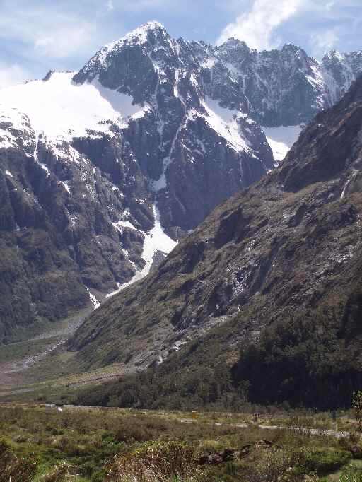 皇太子夫妻が立ち寄った草原、背後の景色が静かな水面に映る「ミラーレイク」、「モンキーバレー」など途中の景色の良い場所で何度も撮影休憩を取りながらミルフォードサウンドへ、ここからは双胴の観光船でフィヨルドのクルージングです、ペンギンの群れやアザラシが岩の上で昼寝する姿、オーストラリア亜大陸との間の「タスマン海」を望むところまで行き約1時間40分ほどのクルージングを楽しみました。