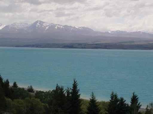 マウントクック近くのプカキ湖、マウントクック方面は天気が悪そうです |