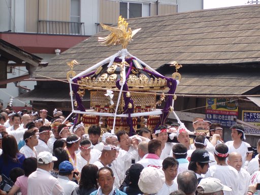 神輿のまわりに大勢の人が集まっていました |