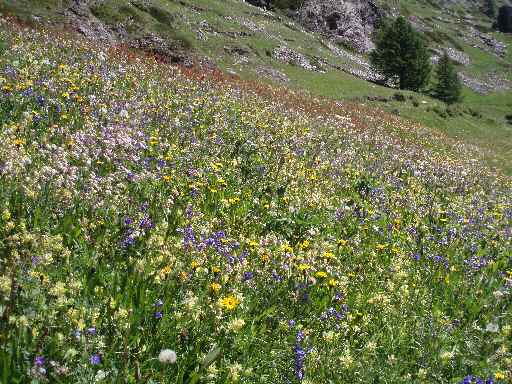 フレジュールからは、まず自動車道路を下り1550m付近から登山道に入り、斜めにトラバースしてシャモニーに向かうコースをとりました。林間の緩いコースを小一時間も行くと突然フロリアの山小屋に出ます、まさに「花の館」と言っていいほど小屋は花に囲まれていて、正面にはモンブラン、エギュイユ・ドゥ・ミディ、モンタンベール、ドリュー、ヴェルテが一望に見渡せる素晴らしく景色の良い山小屋です。ここでコーヒーを一杯いただいてからシャモニーの街に戻ってきました。雲が低かったのがちょっと残念ですが、また訪れる予定です。