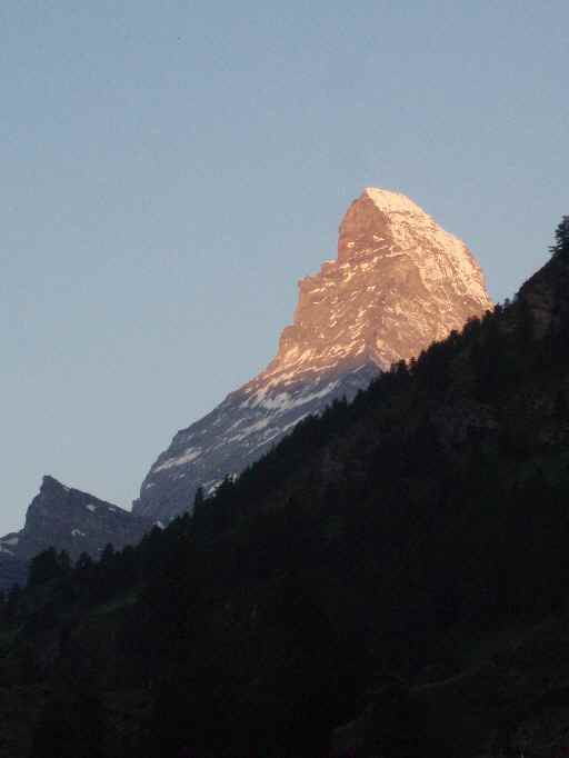 先月の21日以前はズーと全く山が見えない期間が続いていましたが、22日からは毎日晴れています。このところ夕立があったりして少し下り坂の気配です。そんなわけで今日は久しぶりに朝からマッターホルンに雲がかかっていて全く見えませんでした。