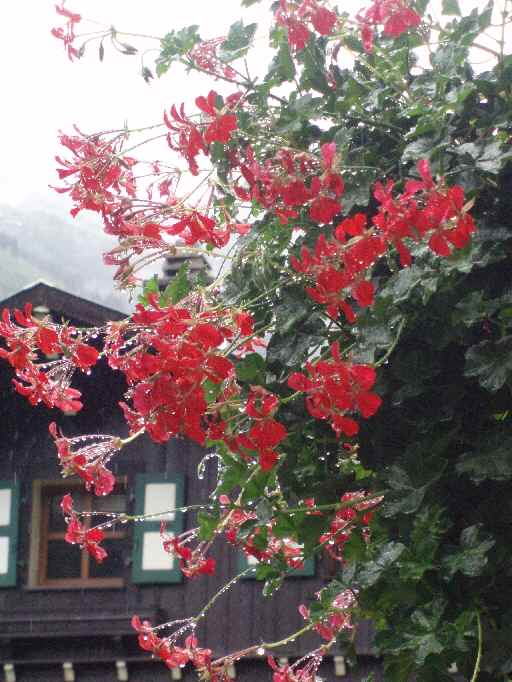 シャモニーへの帰路に花で飾られた山小屋のフロリアに立ち寄ってコーヒーを飲んでいると、かなり高齢の日本人女性がフランス人に日本語だけで一生懸命に道を聞いています。フランス人もお手上げの様子、私が声を掛けると、プラの教会までのコースを知りたいとのこと。彼女が持っていた地図は息子の嫁に書いてもらったという簡単な地図と、雑誌からコピーしたような簡単な案内図だけです。私が向かう方向と曲がり角を教えましたら、鹿児島弁混じりの言葉で色々とお話していただきました。