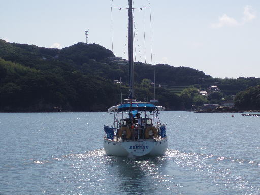 しばらく競技の模様を楽しんでから、お世話になった「佐世保ヨットクラブ」の人達に海上から挨拶をして「平戸瀬戸」の潮の時間に合わせるために10:55に出港しました。