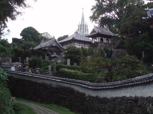 仏教寺院とキリスト教会が一目で見られる平戸ならではの景色