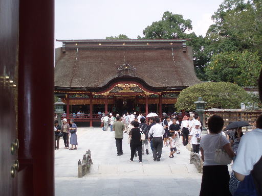 11時ちょうどに約束どおりHDKさんご夫妻に迎えに来ていただきました。都市高速に乗り一路「太宰府天満宮」へ、参道前の駐車場から徒歩で参道の様子を楽しみながら「天満宮」へ、連休の中日ということもあるのでしょうが参道は観光客が多く、「菅原道真」は後世に神格化されたとはいえ、実在の人物を祭っていることもあるのでしょう「出雲大社」とは参拝客の多さは比べることができない程の賑やかさです。