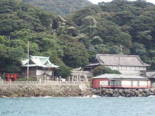 関門橋の門司側の付け根にある「和布刈神社」、関門海峡の一番狭い所です