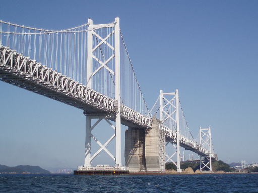 計算どおり連れ潮で快適にくぐった「明石大橋」